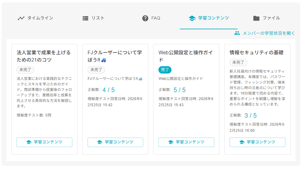 1. 「学習コンテンツ」タブから閲覧可能な学習コースが表示されます。